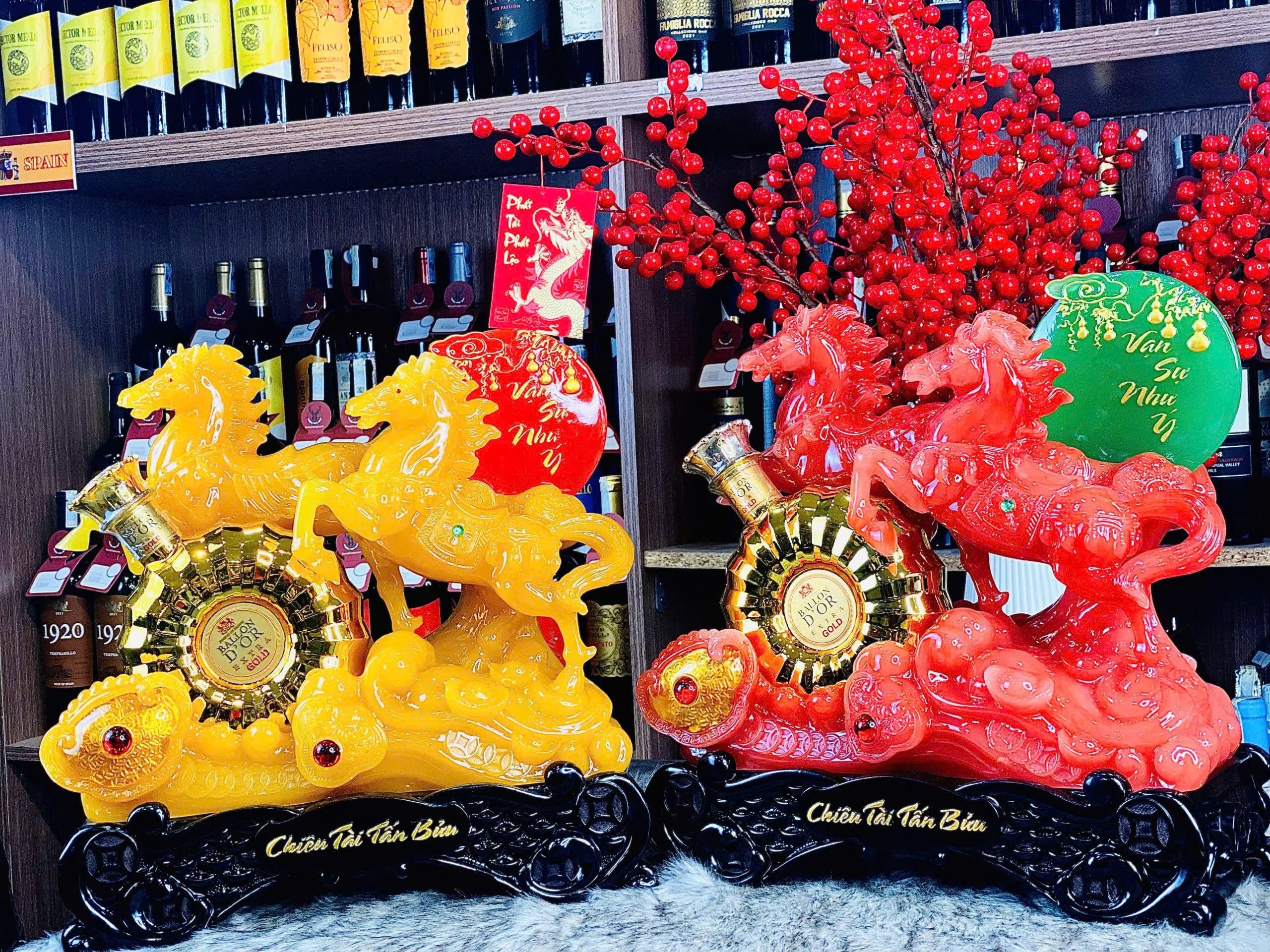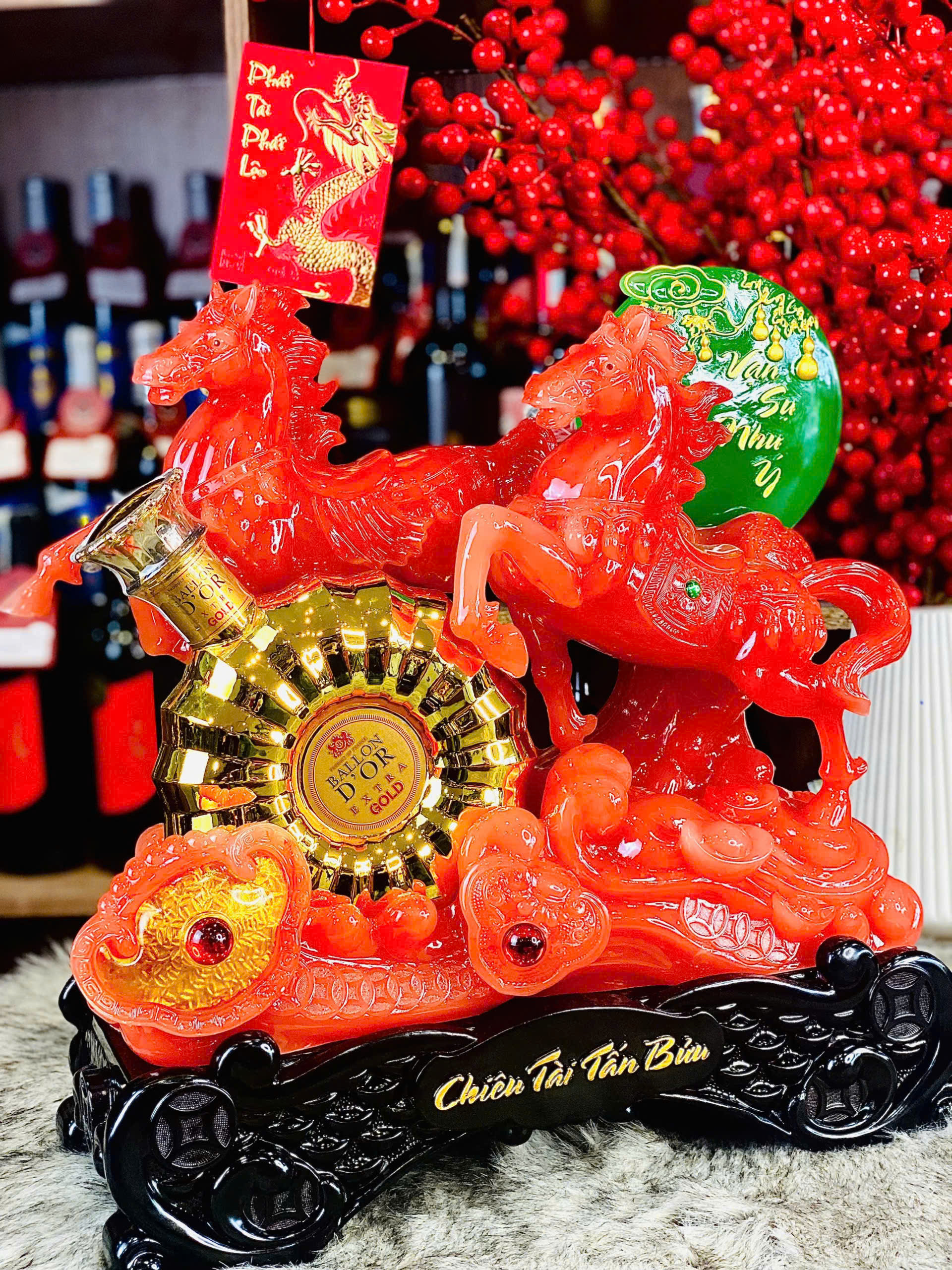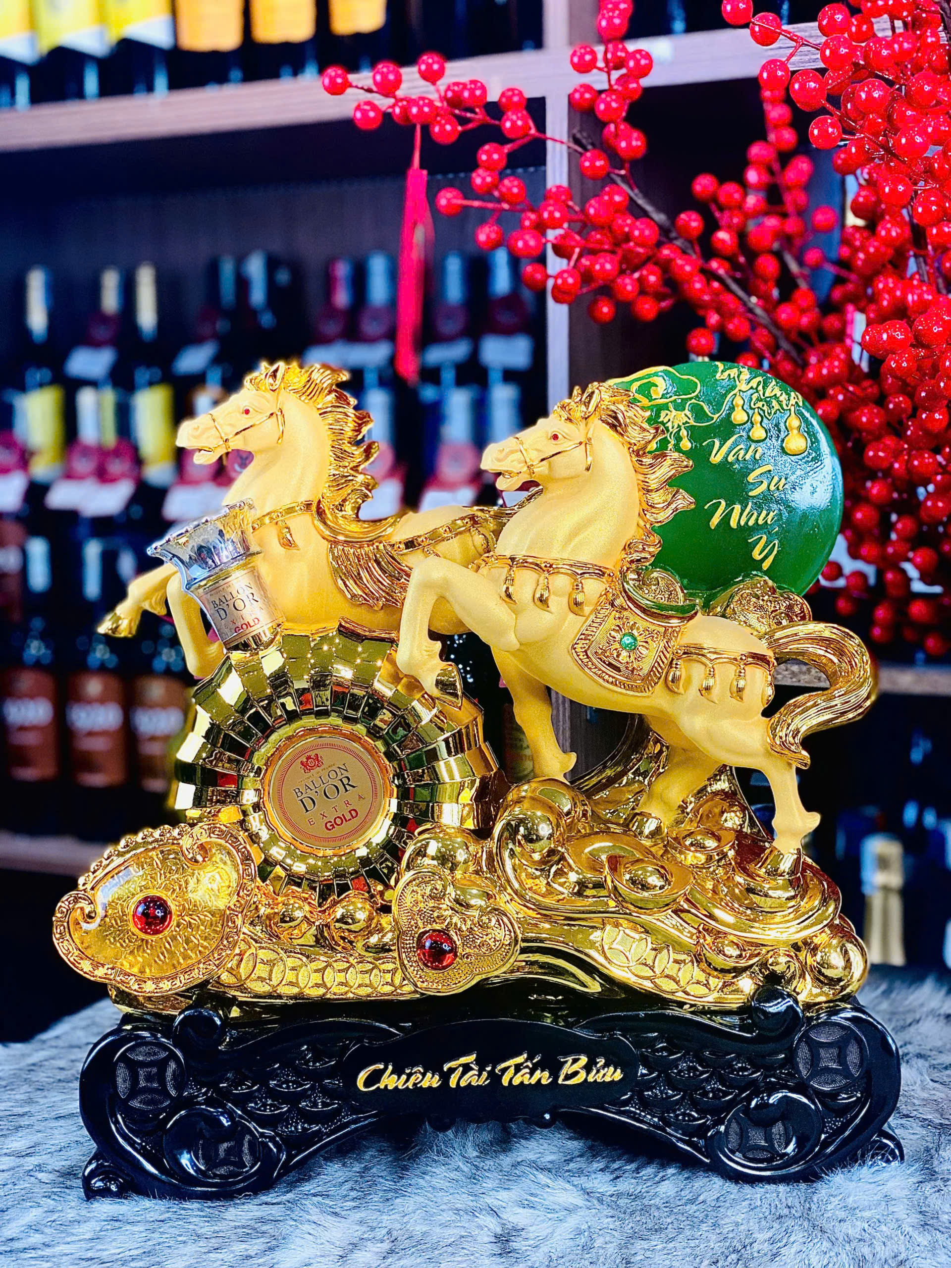 Trong văn hóa Đông Tây, hình ảnh “”Chiến Mã”” luôn là biểu tượng của lòng dũng cảm, sức mạnh phi thường và ý chí quyết thắng trên mọi mặt trận. Chào đón năm Bính Ngọ 2026, bộ sản phẩm kệ ngựa chiến ra đời không chỉ là một vật phẩm trang trí, mà còn là một lời chúc đầy uy lực, một món quà đẳng cấp dành cho những người có bản lĩnh, dám đương đầu và chinh phục thử thách. Đây là sự kết hợp hoàn hảo giữa một kiệt tác điêu khắc hình tượng tuấn mã trong tư thế xung trận và chai rượu Brandy XO Pháp hảo hạng, tạo nên một tặng phẩm sang trọng, ý nghĩa.
