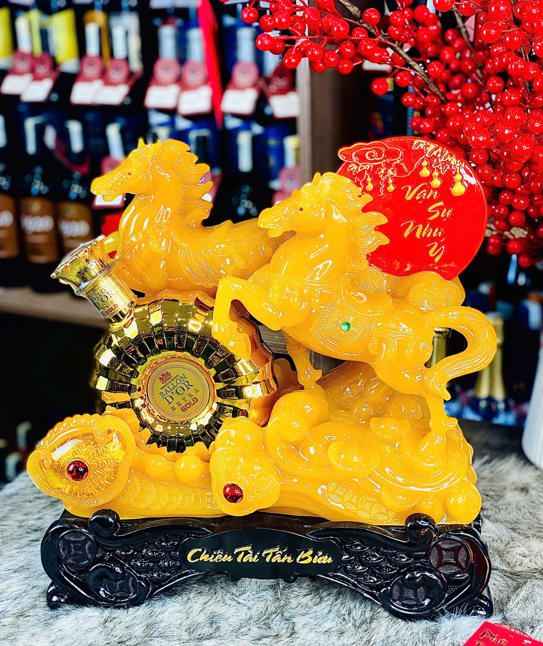 2. Giải Mã Sức Hút Của Kệ Song Mã VÀNG ĐỎ - Mã Đáo Thành Công + Brandy XO 700ml
