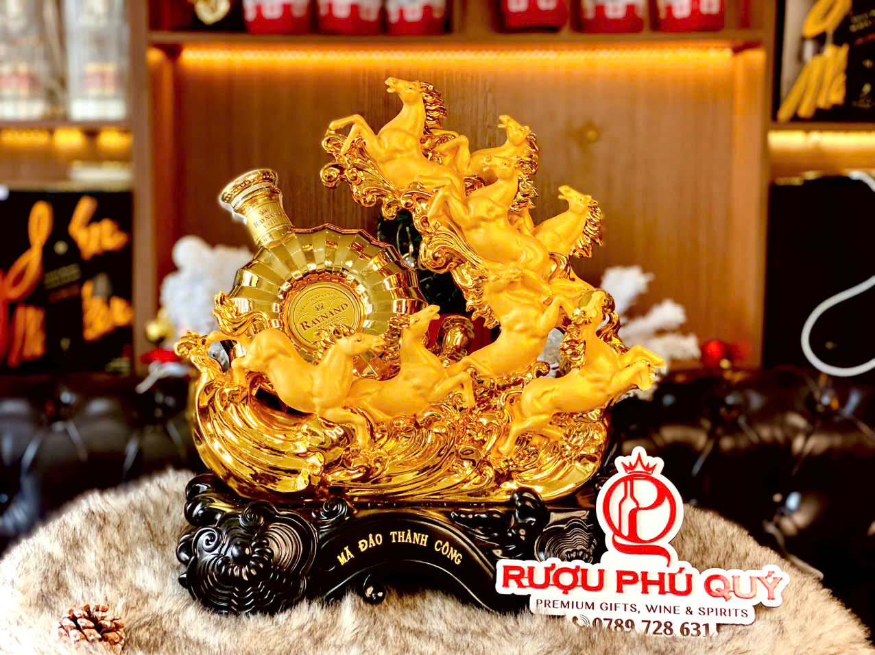 Kệ rượu 8 ngựa Mã Đáo Thành Công là tuyệt tác quà tặng phong thủy cho năm Bính Ngọ 2026, kết hợp nghệ thuật điêu khắc ấn tượng và rượu Brandy XO Pháp hảo hạng. Sản phẩm được phân phối chính hãng bởi RƯỢU NGOẠI SÀI GÒN.