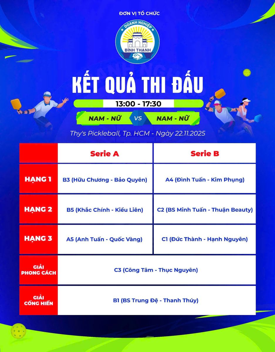 Giải Pickleball mừng sinh nhật CLB Doanh nhân Bình Thạnh đã diễn ra tràn đầy năng lượng, kết nối và tinh thần thể thao đáng tự hào.