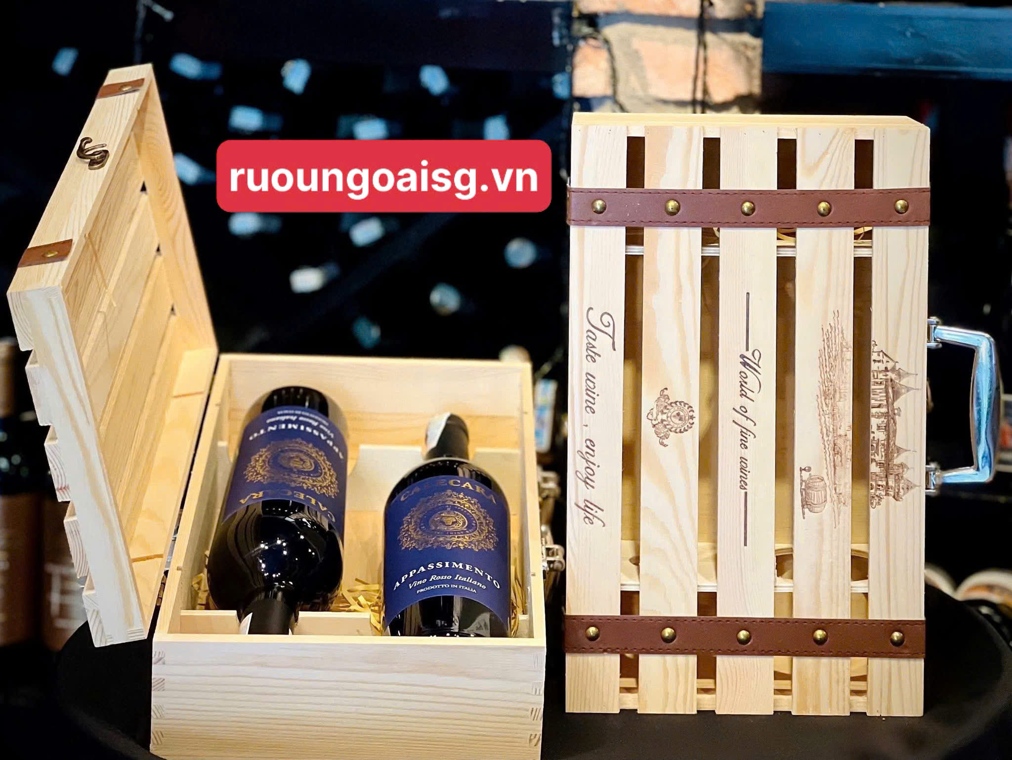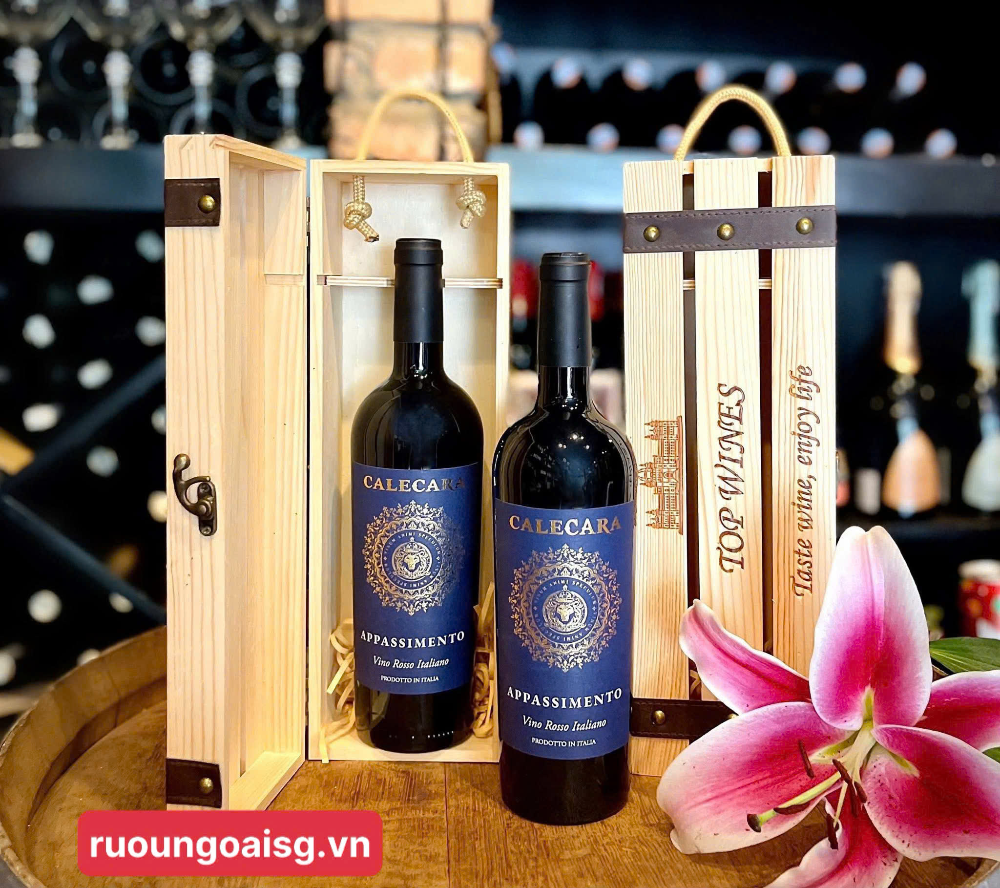 Calecara Appassimento Vino Rosso Italiano là dòng rượu vang đỏ đậm đà, full-bodied từ vùng Puglia, Ý, nổi bật với hương thơm trái cây chín (mận, dâu tây, quả mâm xôi), vị chát mượt mà, hậu vị kéo dài nhờ phương pháp Appassimento (làm khô nho trước khi ép), thích hợp dùng kèm các món thịt đỏ nướng, sốt thịt, phô mai cứng.