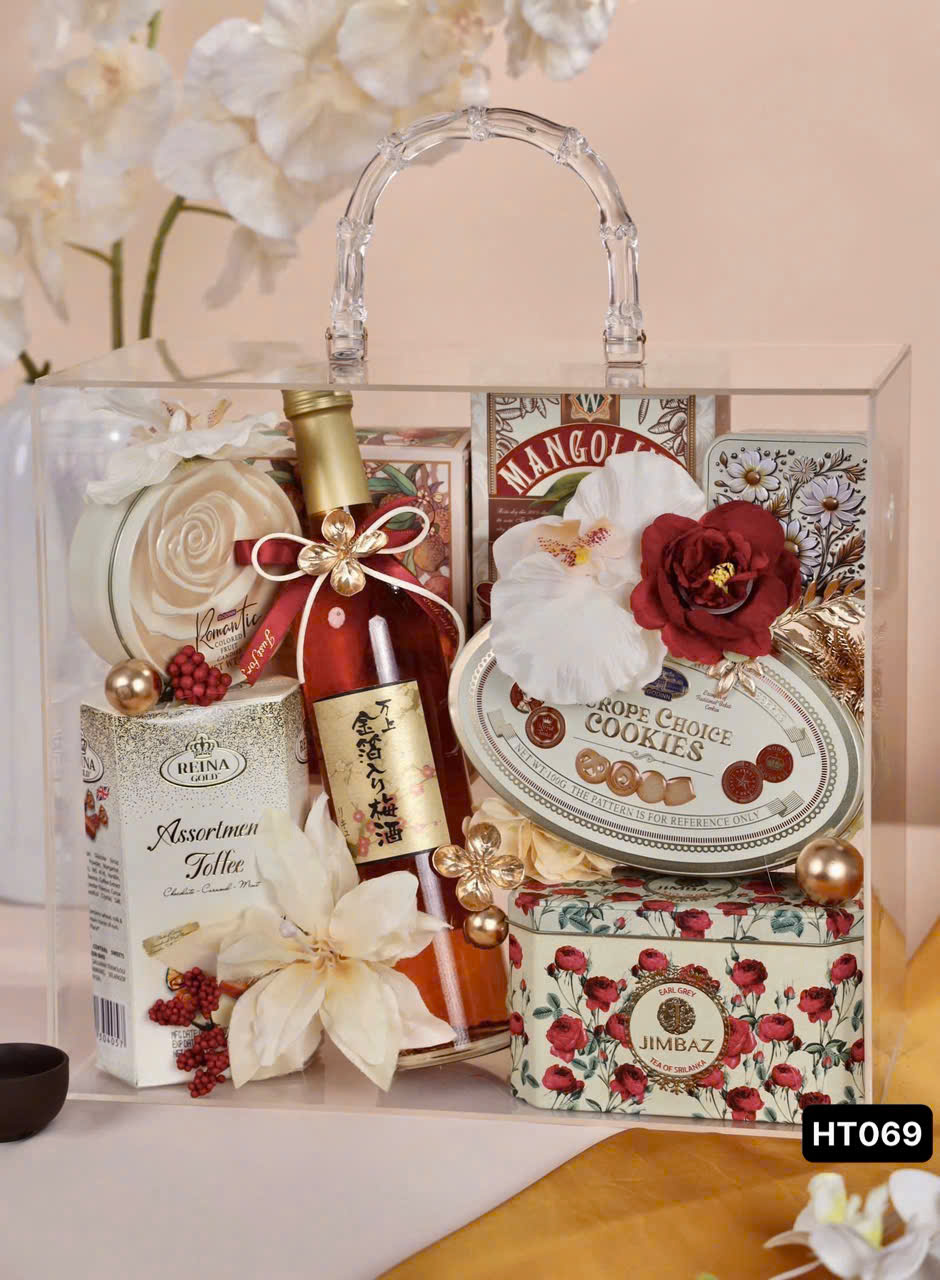 GIỎ QUÀ TẾT BÁNH KEỌ NHẬP 2026 bk26-HT069- RƯỢU NGOẠI SG