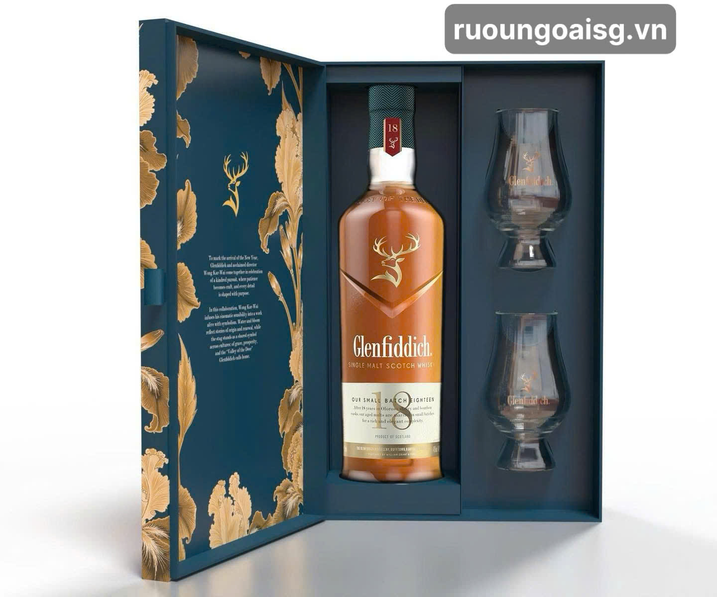 Rượu Whisky Glenfiddich 18 Year Old Small Batch Reserve Hộp Quà Tết 2026 là một chai Single Malt Whisky cao cấp, đại diện cho di sản và kinh nghiệm hơn 130 năm của thương hiệu Glenfiddich. Dòng rượu tinh hoa này được chưng cất tại vùng Speyside Whisky danh giá của Scotland. Phiên bản Hộp Quà Tết 2026 mang đến vẻ ngoài sang trọng là lựa chọn quà tặng đẳng cấp nhất để tri ân đối tác và người thân yêu.