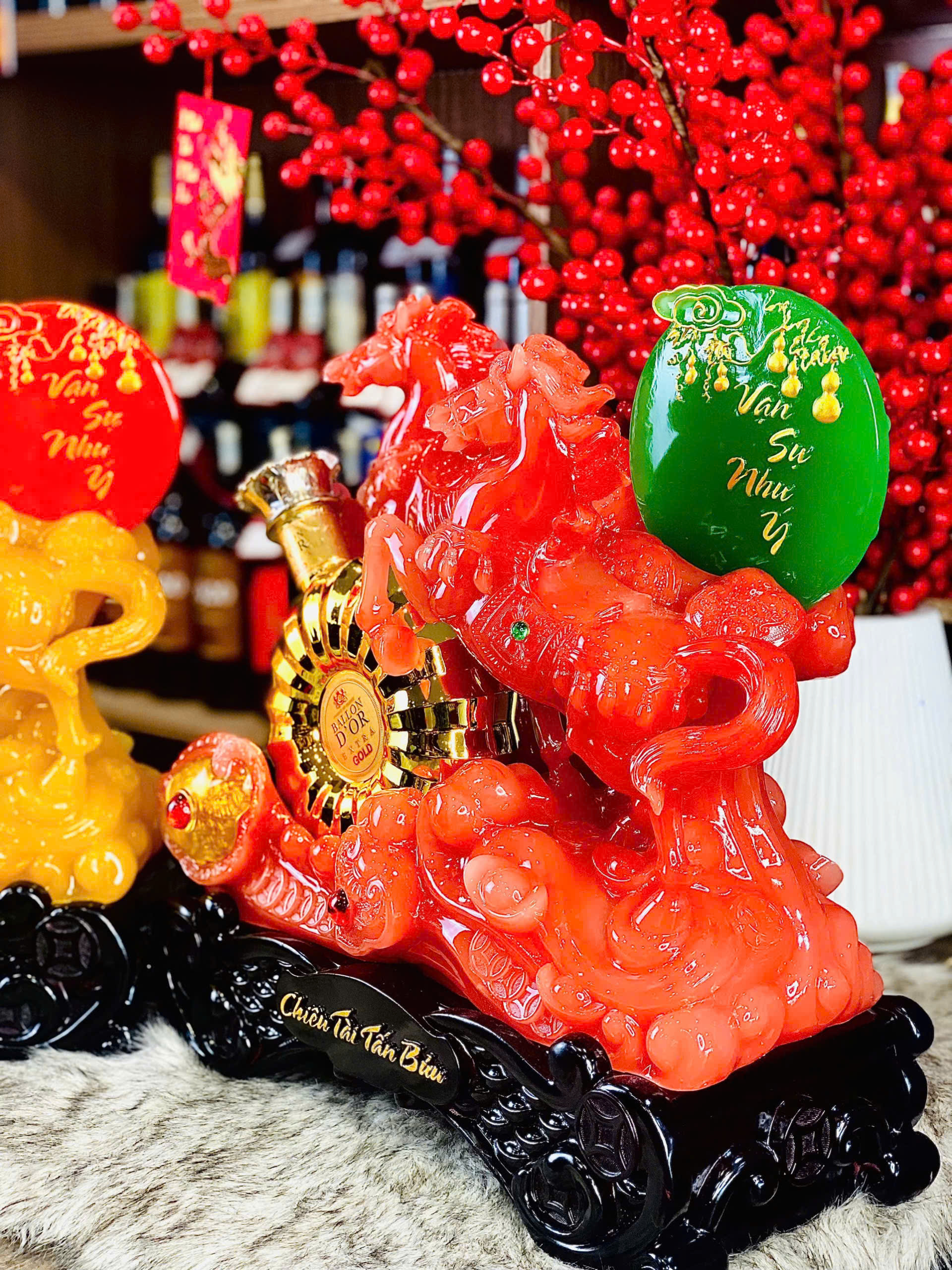 Trong văn hóa Đông Tây, hình ảnh “”Chiến Mã”” luôn là biểu tượng của lòng dũng cảm, sức mạnh phi thường và ý chí quyết thắng trên mọi mặt trận. Chào đón năm Bính Ngọ 2026, bộ sản phẩm kệ ngựa chiến ra đời không chỉ là một vật phẩm trang trí, mà còn là một lời chúc đầy uy lực, một món quà đẳng cấp dành cho những người có bản lĩnh, dám đương đầu và chinh phục thử thách. Đây là sự kết hợp hoàn hảo giữa một kiệt tác điêu khắc hình tượng tuấn mã trong tư thế xung trận và chai rượu Brandy XO Pháp hảo hạng, tạo nên một tặng phẩm sang trọng, ý nghĩa.