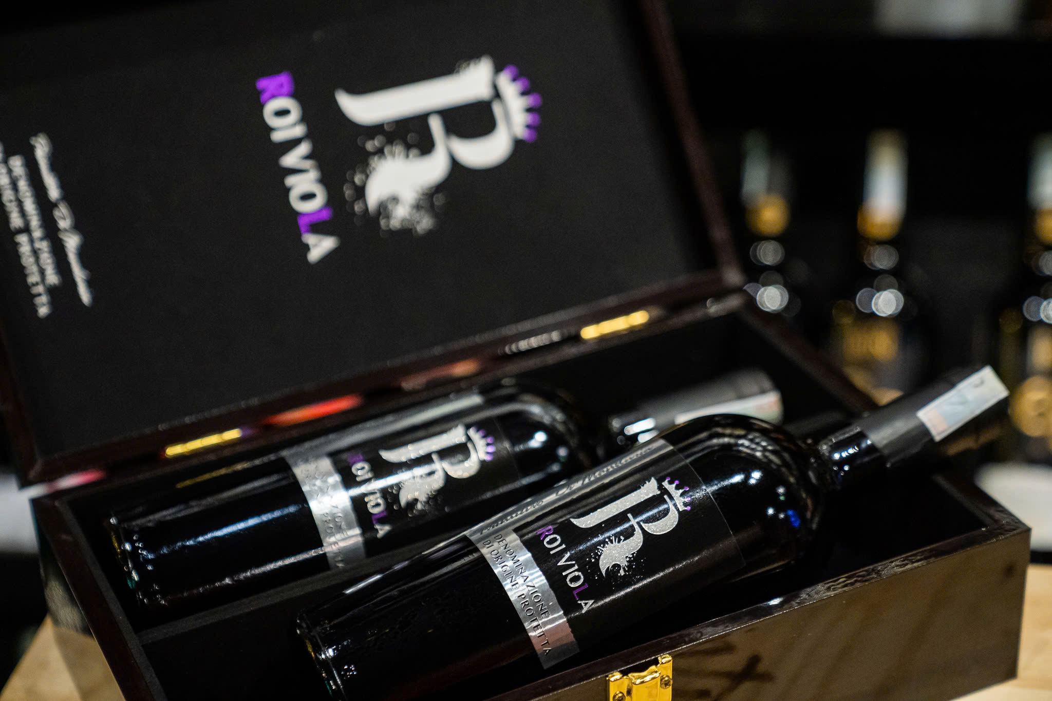 - Manduria mà chai rượu R - Roi Viola có một hương vị hoa lavender & vanilla rất mãnh liệt, một hương thơm nồng nàn rất cung cách của bậc tôn vương trong các loại nho mà từ đó tên gọi Vua Tím - Roi Viola ra đời!